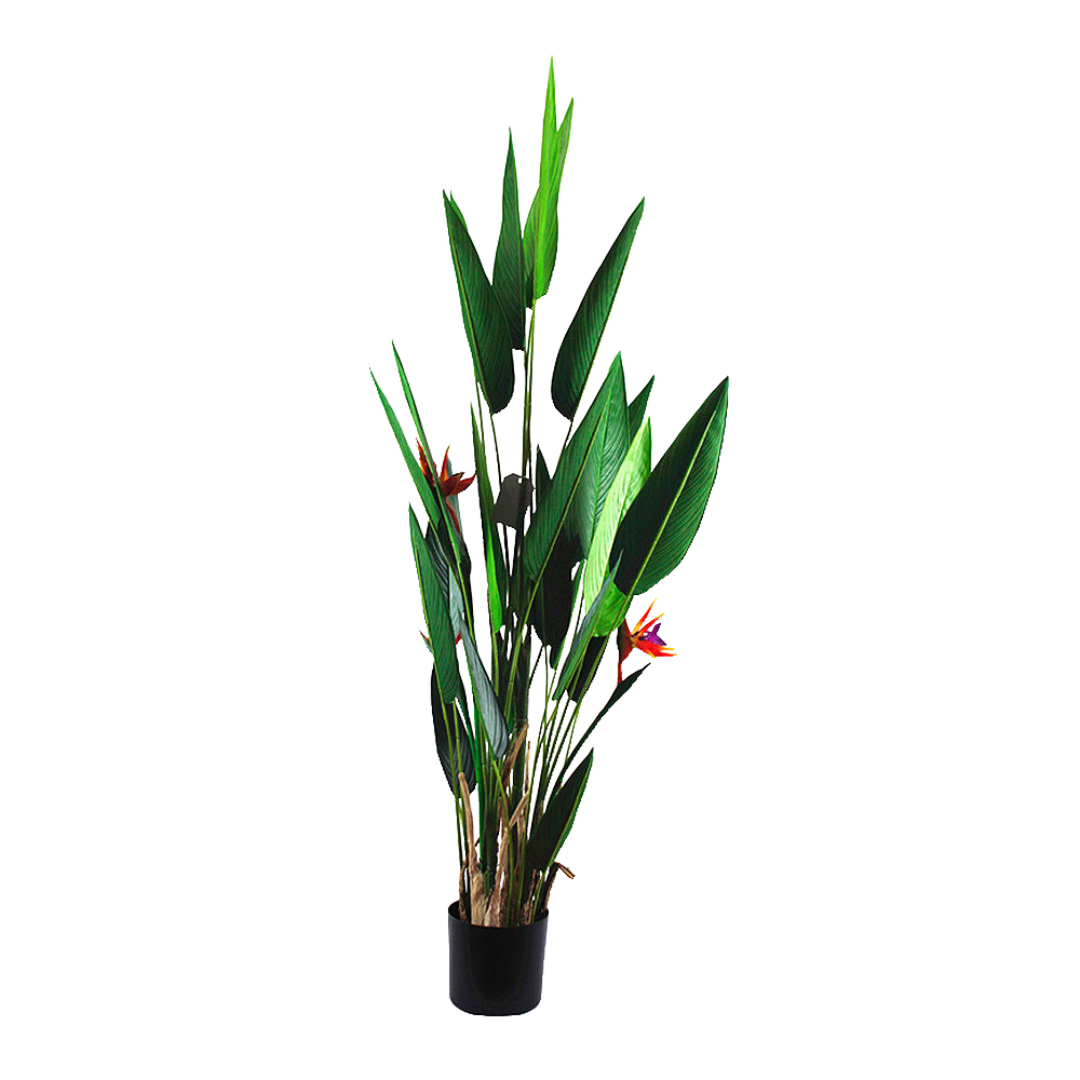 Nuestra planta artificial Ave del Paraíso cuenta con una altura de 180 cm, es una planta espectacular que atrae la atención de cualquier persona. Sus hojas verdes brillantes y sus flores de tonos vivos y llamativos parecen auténticas y detalladas.