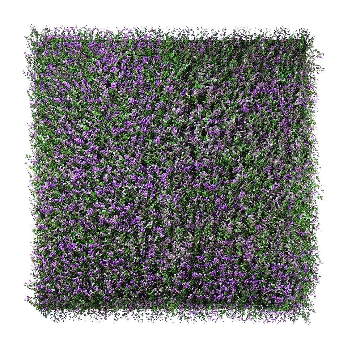 Perfect Purple es un modelo de jardín vertical artificial diseñado para brindar la belleza y el esplendor de la naturaleza en cualquier lugar, ya sea en el interior o en el exterior. La composición de las hojas sintéticas es 100% HDPE. Este jardín vertical artificial de 1×1 metro es una opción elegante y duradera para añadir un toque de naturaleza a cualquier entorno.