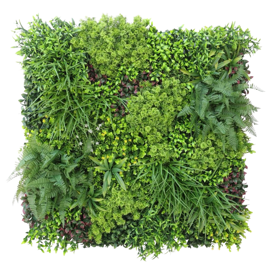 Rose es un modelo de jardín vertical artificial diseñado para brindar la belleza y el esplendor de la naturaleza en cualquier lugar, ya sea en el interior o en el exterior. La composición de las hojas sintéticas es 100% HDPE. Este jardín vertical artificial de 1×1 metro es una opción elegante y duradera para añadir un toque de naturaleza a cualquier entorno.