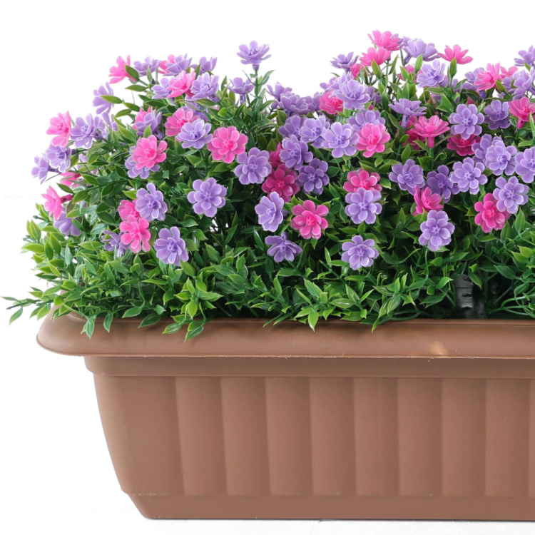 La jardinera artificial Mixta es una pieza que añadirá un toque de color y vida a cualquier espacio, ya sea en interiores o exteriores. Con unas dimensiones de 50x21x29 centímetros para la jardinera y 50x21x15 centímetros para la maceta.