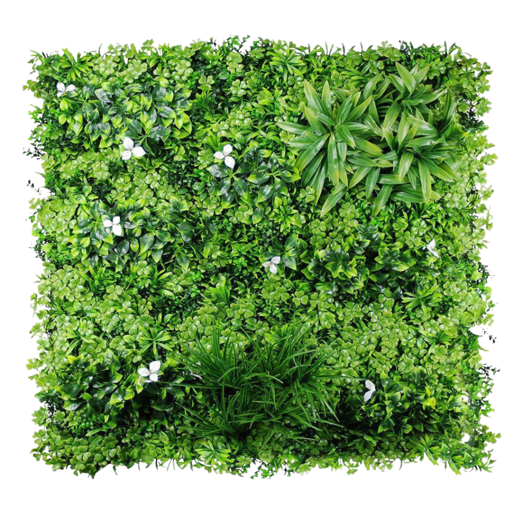 White Ocean es un modelo de jardín vertical artificial diseñado para brindar la belleza y el esplendor de la naturaleza en cualquier lugar, ya sea en el interior o en el exterior. La composición de las hojas sintéticas es 100% HDPE. Este jardín vertical artificial de 1×1 metro es una opción elegante y duradera para añadir un toque de naturaleza a cualquier entorno.