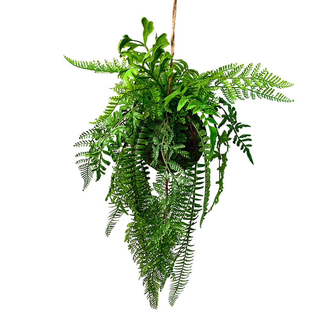 Continental Grass ofrece plantas colgantes artificiales que vienen en dos variedades, helechos colgantes y aleos.
